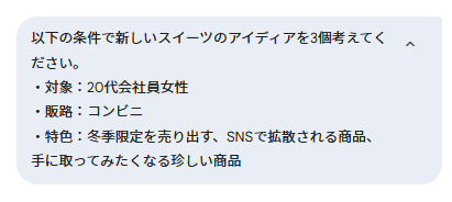 そのため、こちらから条件を提示してアイディアを出させることができます。